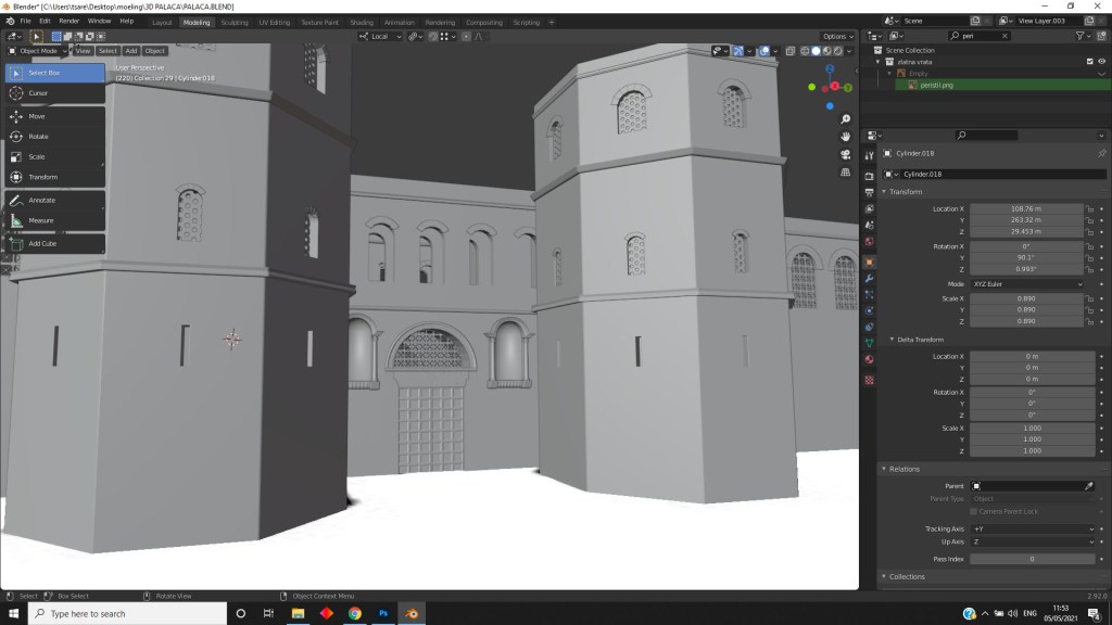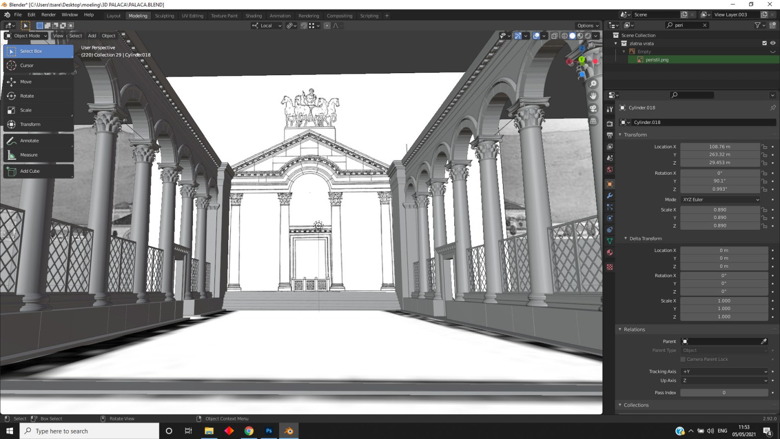 I am trying to achieve a reconstruction of the Palace as close to the original as possible. I’ve done numerous reads and found many educated references which I am using on the model. So far as of May 2021, I am almost halfway through the modeling process. When that phase is done, I will have to learn how to properly texture it.